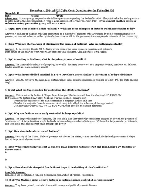 Read Online Federalist Paper 10 Questions Answers Epub